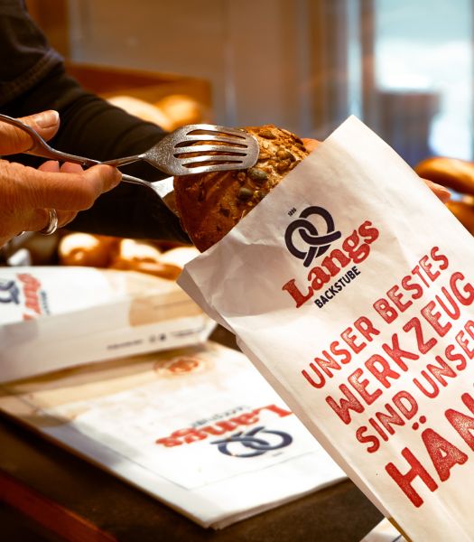 Wir haben zum 125. Jubiläumsjahr den Markenrelaunch umgesetzt und in diesem Zuge auch die neuen Tüten gestaltet, in denen die leckeren Backwaren verpackt werden.