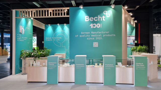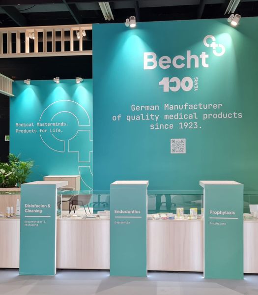 Die medical Masterminds von Becht eröffnen ihr Messejahr in Deutschland mit einem wuchtigen Auftritt bei der IDS 2023. Das breite zahnmedizinische Angebot ist modern und bunt inszeniert und kehrt den motivierten, fortschrittlichen Markenspirit nach außen. Der Stand bietet ansprechende, ruhigere Besprechungsmöglichkeiten und kombiniert sie mit einem offenen Tresen mit Blick auf die Produkte. Das für den medizinischen Bereich stehende Türkis-Blau lässt den Messestand leuchten und sorgt für einen starken Wiedererkennungswert. Wir wünschen spannende, erfolgreiche Gespräche und ganz viel Spaß auf der IDS in Köln.