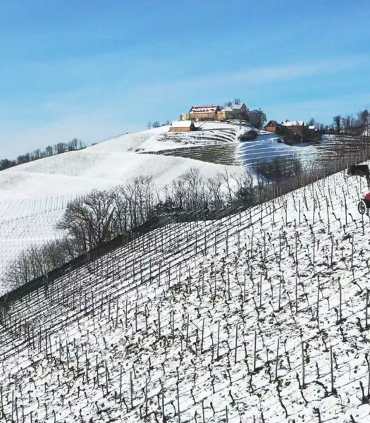 Noch am 12. Februar lag Schnee in den Weinbergen des Schwarzwaldweinguts Männle. Malerisch erstreckt sich das Durbachtal zwischen den letzten Ausläufern des nördlichen Schwarzwalds.