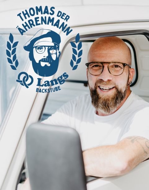 Seit September des letzten Jahres ist Thomas der Ährenmann eines der neuen Gesichter der Langs Backstube. Er liebt und lebt das Handwerk, führt viele Gespräche auf Märkten und Roadshows mit seiner APE oder bei Brottastings in den Filialen. Über echte Originale, die Rohstoffe aus der Region und die Leidenschaft für echten handgemachten Genuss. Jeden Monat steht ein Produkt im Fokus, welches von ihm in Form eines Videos auf den Socials von Langs Backstube erklärt wird.