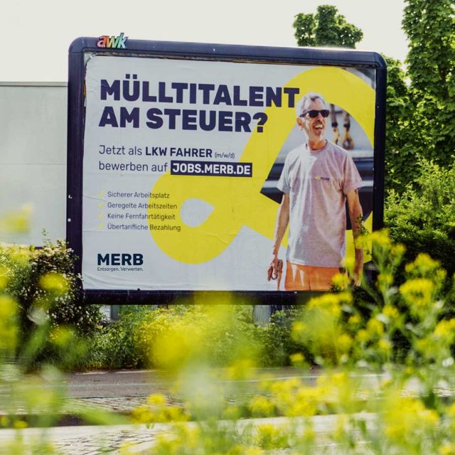 Die Kampagne wird digital auf der Website, in den sozialen Medien sowie im öffentlichen Raum durch Großformatplakate, Fahrzeugbeschriftungen und weitere alltägliche Touchpoints ausgerollt. Die zentrale Kommunikationsplattform ist die Website. Durch die „Mülltitalent“-Kampagne wird das Recruiting bei MERB effektiv unterstützt und die Arbeitgebermarke gestärkt. Die Kombination aus digitaler und physischer Präsenz, emotionalem Storytelling und gezielter Ansprache der Zielgruppen trägt dazu bei die Bewerberqualität zu erhöhen.